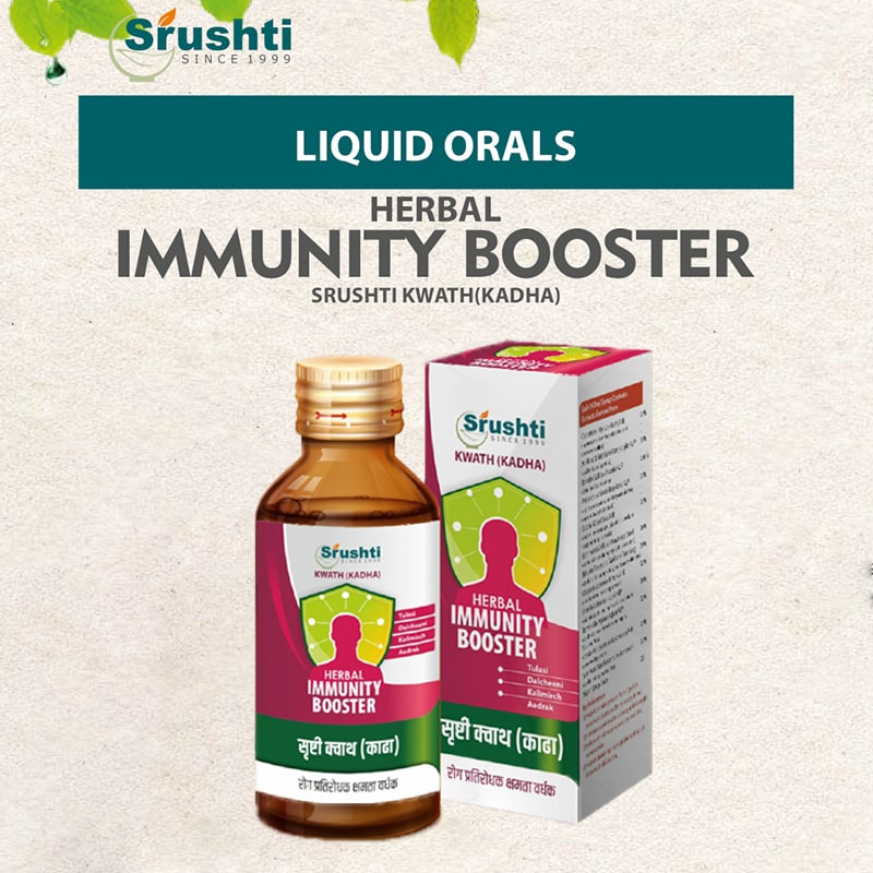 Srushti Kwath is an acclaimed ayurvedic formulation The blend consists of Tulsi, Sunth, Kalimiri, Dalcheeni, Munakka which boosts the immune system and helps to combat infections.